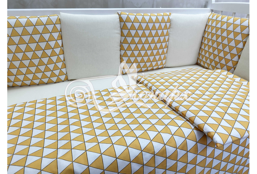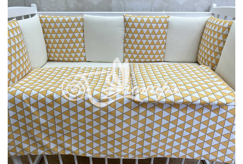 Бортик составной: 12 подушек 31х34 см на замочках упакованы в сумку-переноску.